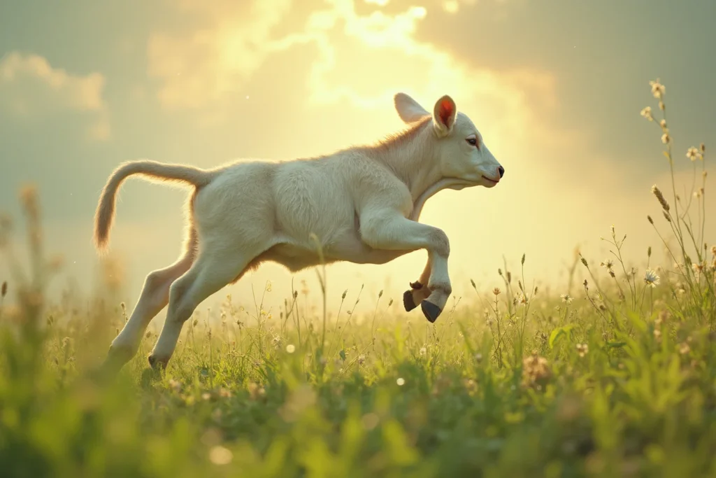- Libertação e Cura: Sonhar com bezerro saltitando indica que você experimentará uma cura emocional ou espiritual profunda, que o fará sentir-se livre e exuberante, como um bezerro solto da estrebaria. Suas tristezas serão transformadas em alegria pura.