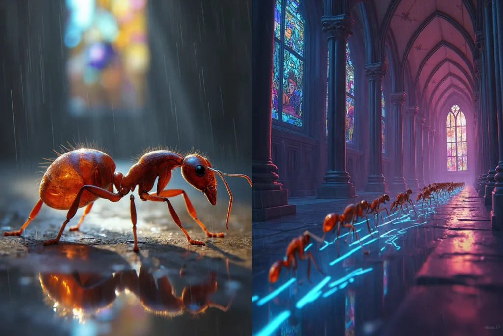 Formigas construindo pontes ou superando obstáculos juntas em sonhos simbolizam o poder da cooperação. Podem surgir quando enfrentamos desafios que requerem trabalho em equipe.