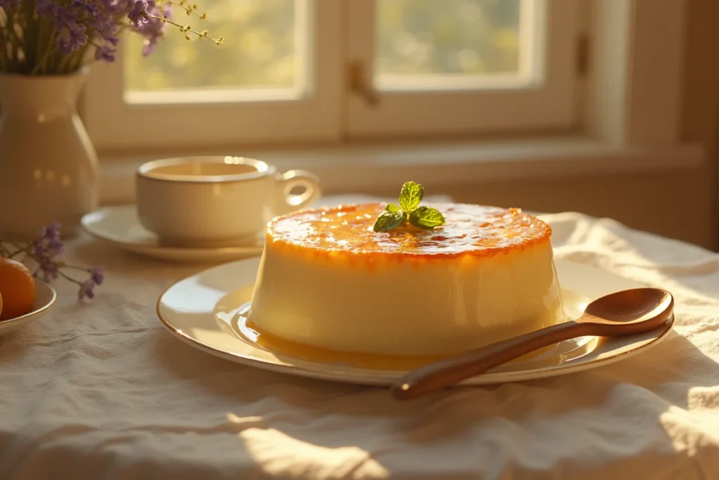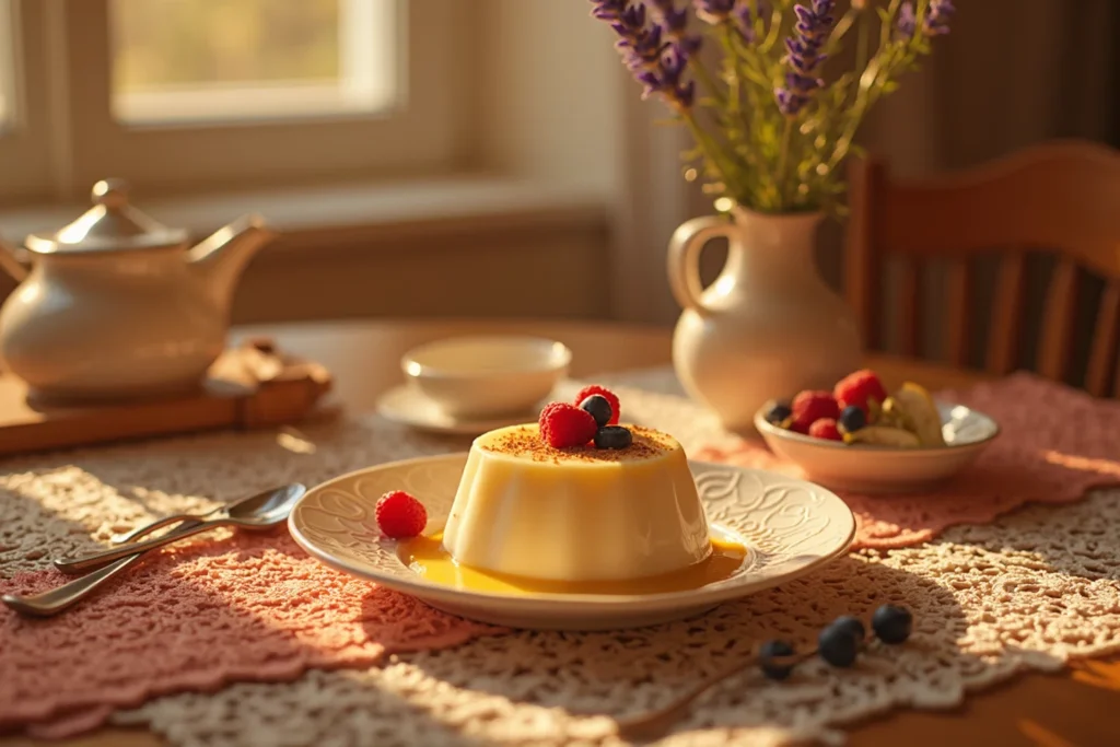 A textura cremosa do pudim representa suavidade, acolhimento e conforto.
